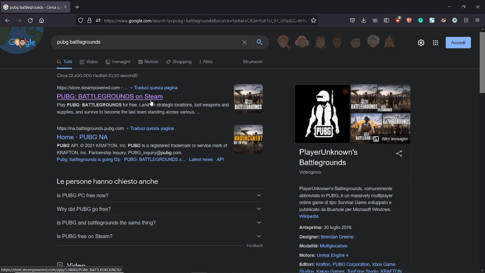 Search PUBG on Google